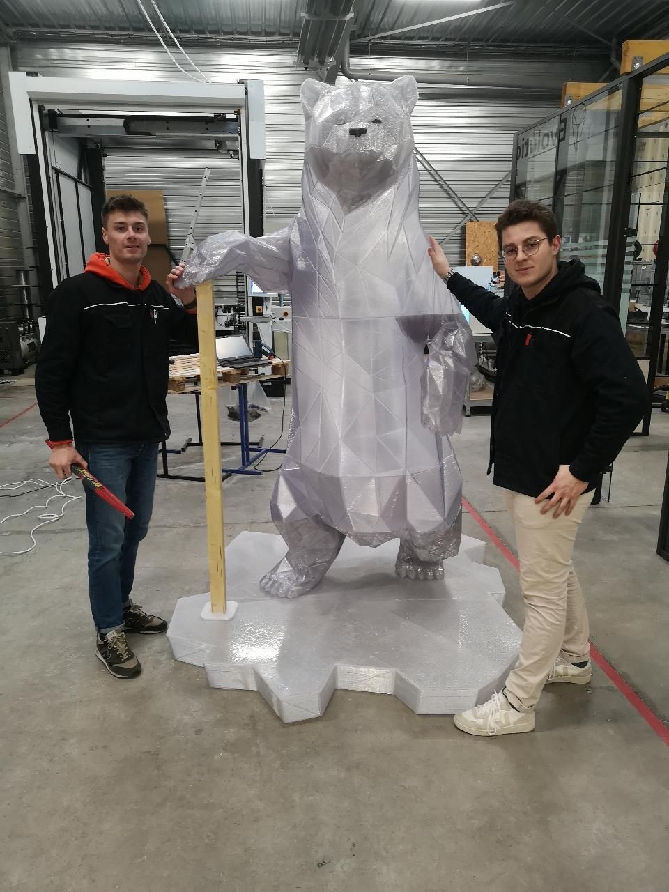 Grâce à notre imprimante 3D hors-norme, d'un volume de travail de 8 m3, nous avons cette capacité à travailler de grandes pièces.